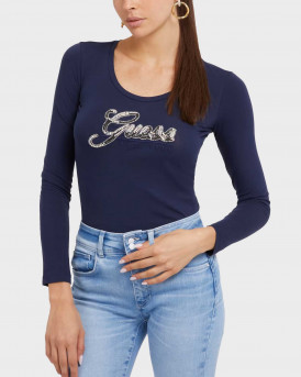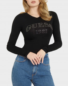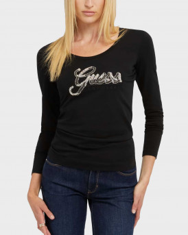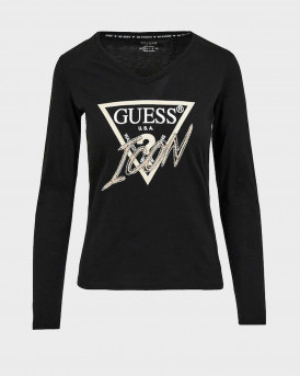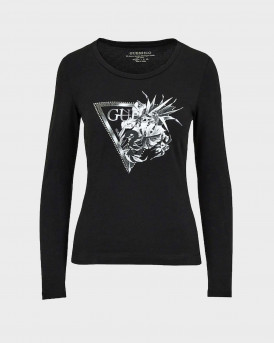 GUESS LS CN LEO TRIANGLE ΓΥΝΑΙΚΕΙΑ ΜΑΚΡΥΜΑΝΙΚΗ ΜΠΛΟΥΖΑ - W5BI75J1314 - ΜΑΥΡΟ