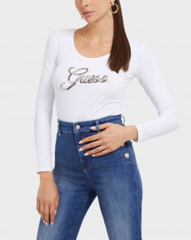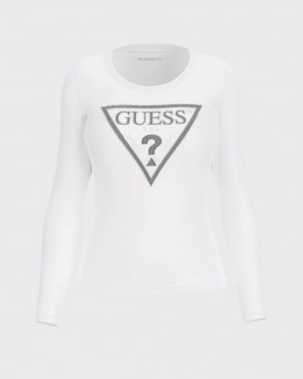 GUESS LS CN LEO TRIANGLE ΓΥΝΑΙΚΕΙΑ ΜΑΚΡΥΜΑΝΙΚΗ ΜΠΛΟΥΖΑ - W5BI75J1314 - ΕΚΡΟΥ