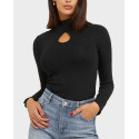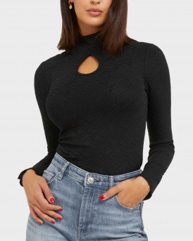 GUESS VALERIA ΓΥΝΑΙΚΕΙΟ ΜΑΚΡΥΜΑΝΙΚΟ CUTOUT ΤΟΠ - W5YP10KCXS1 - ΜΑΥΡΟ