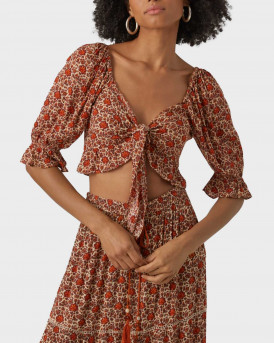 VERO MODA ΓΥΝΑΙΚΕΙΑ ΜΠΛΟΥΖΑ ΜΕ ΚΟΡΔΟΝΙ ΣΤΙΝ ΛΑΙΜΟ - 10281906 - ΠΟΡΤΟΚΑΛΙ