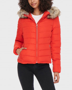 ΟΝLY ΓΥΝΑΙΚΕΙΟ Κοντό Puffer Μπουφάν με Γούνινη Κουκούλα - 15158943 - ΚΟΚΚΙΝΟ