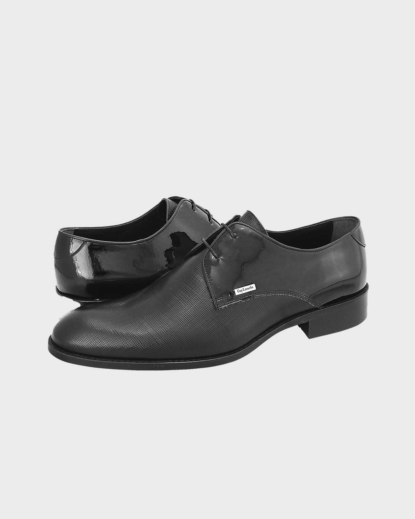Ανδρικά δετά παπούτσια Guy Laroche κατασκευασμένα από δέρμα και λουστρίνι. Διαθέτουν δερμάτινη φόδρα και δερμάτινη σόλα.