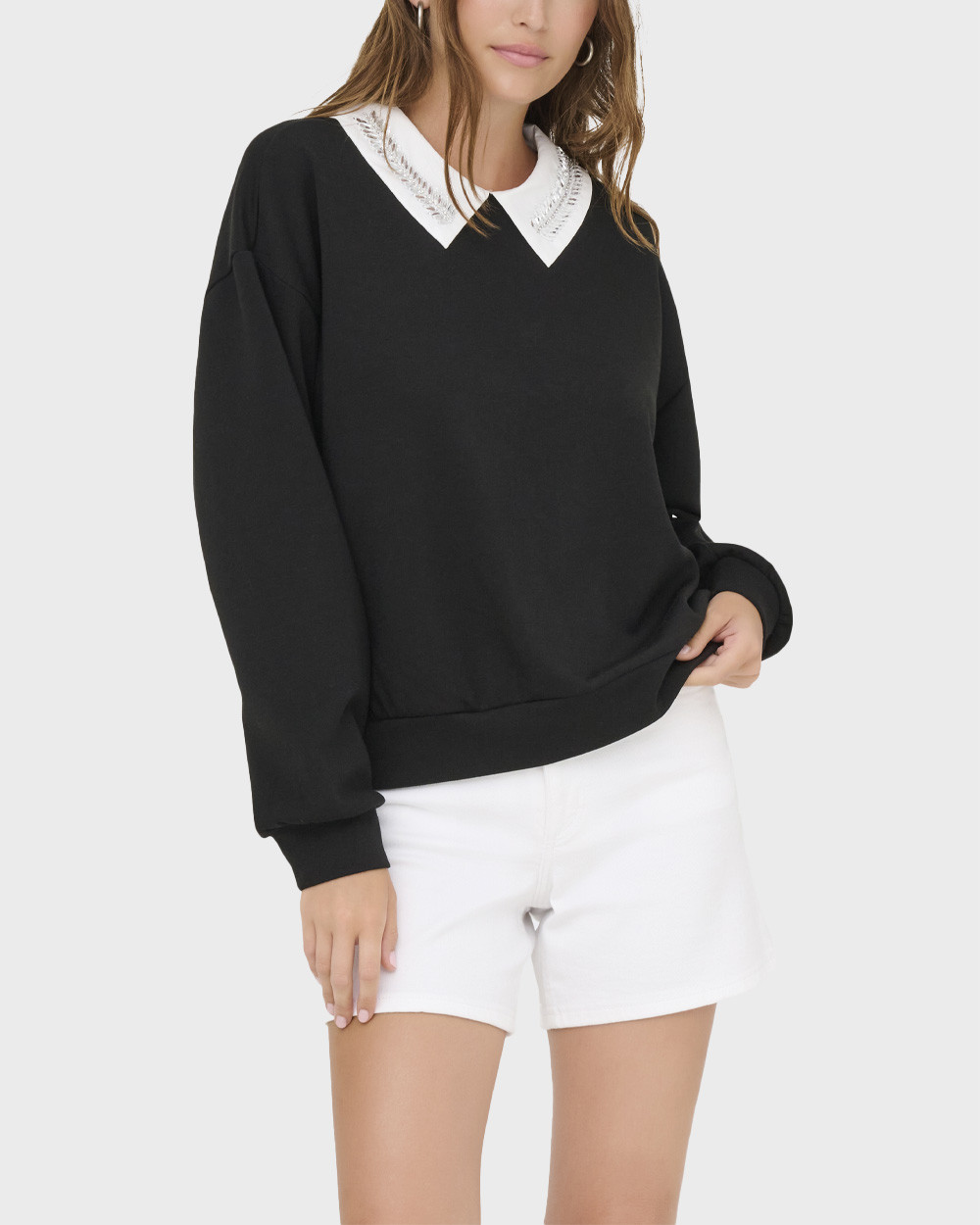 Στρογγυλή λαιμόκοψη με γιακά με στρας