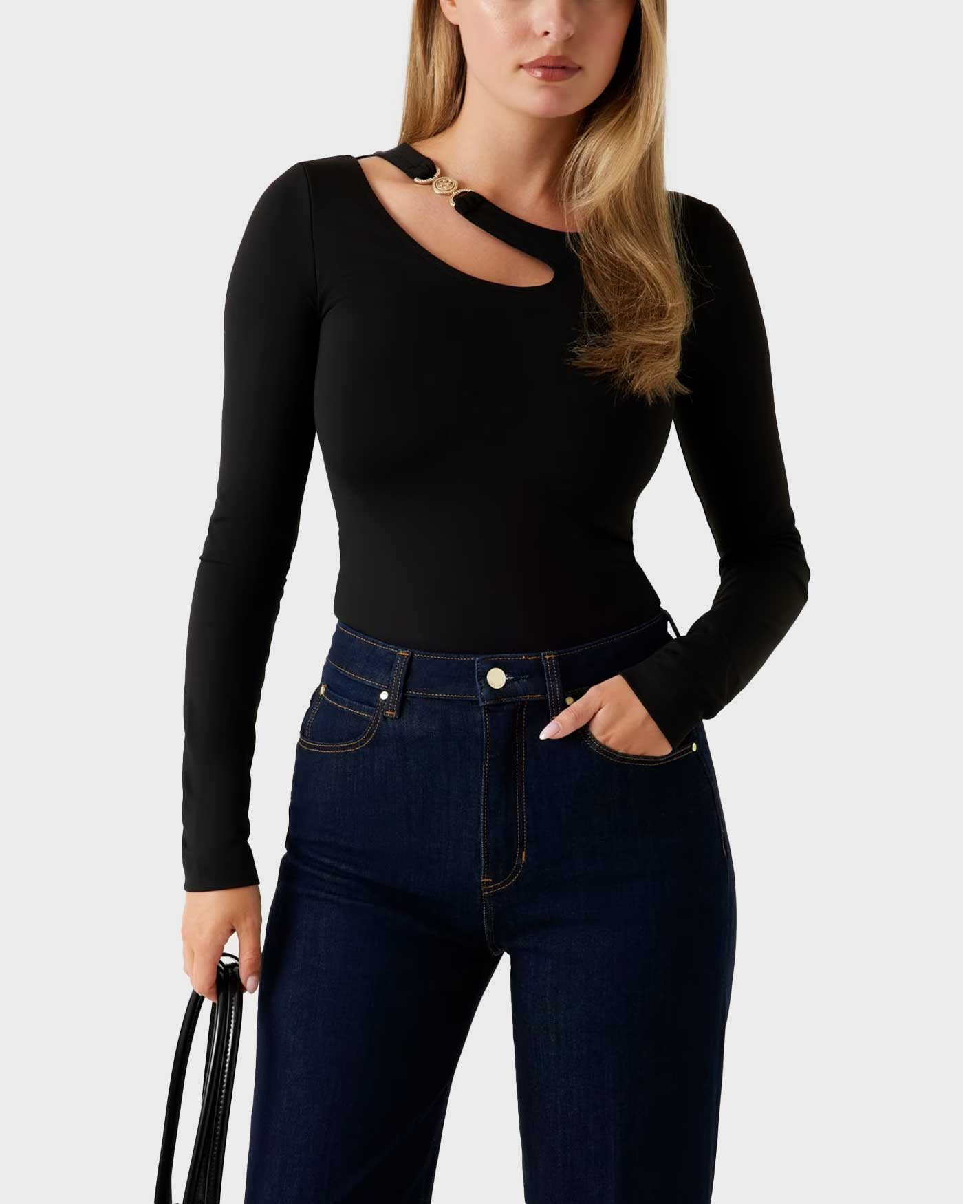 GUESS LS ELEANOR ΓΥΝΑΙΚΕΙΟ ΜΑΚΡΥΜΑΝΙΚΟ ΤΟΠ CUT-OUT - W5BP18KC7M2 - 4226974
