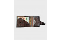 Tru Virtu Πορτοφόλι Click & Slide Croco. Το μεγεθός του είναι λίγο μεγαλύτερο από μια πιστωτική κάρτα. Διαθέτει θήκες για 5 κάρτες ενώ ανοίγει πολύ εύκολα με το δάχτυλο. Η εσωτερική θήκη αλουμινίου προστατεύει τις κάρτες με τσιπ NFC/RFID, ενώ η θήκη από ιταλικό δέρμα προσφέρει επιπλέον χώρο για πιστωτικές - επαγγελματικές κάρτες και σημειώσεις.