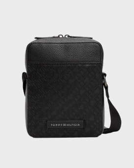 TOMMY HILFIGER TH MONOGRAM MEN'S CROSSBODY REPORTER BAG - AM0AM13836 - BLACK