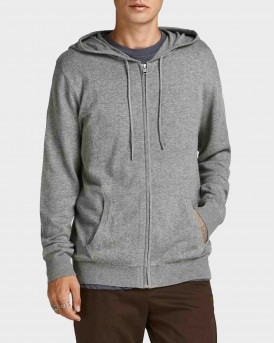 JACK & JONES HOODED ZIP KNITTED MEN'S CARDIGAN - 12190642 - GREY