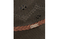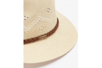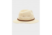 Bring a carefree, bohemian look to any summer outfit with the Barbour Flowerdale trilby hat. Boasting a woven crochet-like pattern and an unstructured brim for a laid back feel, the hat is offered in olive, cream or navy for effortless coordination.Adding the perfect finishing touch, the outer crown boasts a braided leather headband with a metal Barbour logo badge.