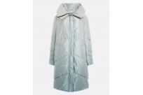 Long puffy jacket made of synthetic fabric.