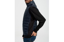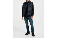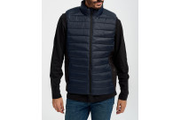 This vest is made from 100% recycled polyester. It is insulated with recycled faux down filling fibers.
